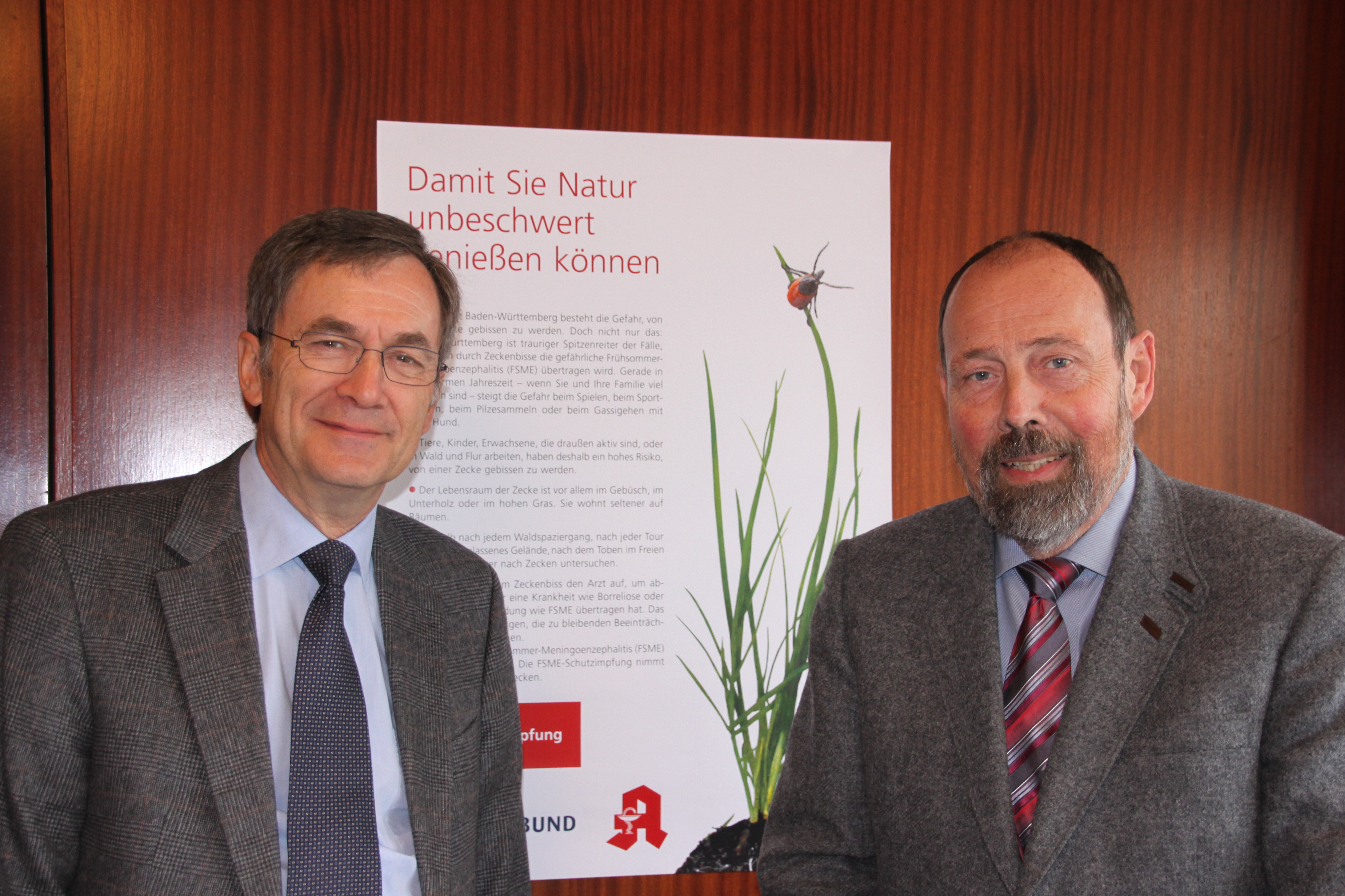 Warum es gerade im Südwesten wichtig ist, etwas gegen Zecken zu tun und wie Ärzte und Apotheker die Bevölkerung aufklären, erläutern der Vizepräsident des LAV Baden-Württemberg e. V., Wolf Kümmel, und der stellvertretende Vorsitzende von MEDI Baden-Württemberg e. V., Ekkehard Ruebsam-Simon.